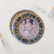 Elegante clássico, vibrante Renascentismo arte fina, obra-prima de Bottega della Robbia ( Florence - Itália ) em cores brancas, azuis, verdes, castanhas.Uma cena de natividade antiga no céu azul sobre uma coroa floral decorativa brilhante amarela verde e verde. design artística com uma pedra brilhante azul-sapphire gem ...