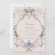 Mande sua vintage com este convite de casamento temático da era da vintage opulente. Apresentando criaturas elegantes em volta dos seus nomes. Creme macio com tons de roxo azul e pinks em uma matiz pastel refletindo o tempo de regência. Vintage e design de casamento elegante.