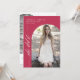 Sim! Ela finalmente se formou na escola, seja no segundo grau, na faculdade, na universidade, ou em um programa de formando, então agora é hora de festejar! Felicite e comemore um dos momentos da vida que ela fez com este elegante convite para a graduação minimalista, elegante, com um belo roteiro de caligrafia e fotos do formando em forma de arco num fundo viva magenta. Basta personalizar e substituir o texto e as fotos na caixa de personalização. Por favor, note: as frases elegantes do script de caligrafia, que diziam "ela fez" e "formando", juntamente com as linhas e outros elementos gráficos, não podem ser editados, apagados ou movidos. Eles estão consertados. Se precisar alterar a cor, você pode personalizar o cartão de convite. Você pode personalizar e personalizar o convite para ajustado das suas necessidades de evento de casamento e clicar em personalizar o convite. Você pode personalizar facilmente o convite com o texto como um download digital e enviá-lo eletronicamente e compartilhá-lo com seus convidados através de mensagem de texto, email ou mídia social. Ou também pode optar por enviar/postar o convite relativo aos seus detalhes aos seus convidados. Ou você pode receber ambos — convite impresso e receber o convite em formato digital como um download instantâneo.