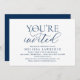 Placa de convite de festas do Script Azul do Marinho Elegante moderno (Você está convidado). Convide os convidados com este Cartão de Convite perfeito. É muito fácil adicionar/ editar com os detalhes da sua parte no chá de panela.