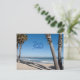 Uma paisagem oceânica do Pacífico enquadrada por palmeiras é o fundo deste convite temático para qualquer convite ocasional costeiro.