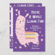 Esta design apresenta um belo Llama em um fundo roxo com elementos de coração cor-de-rosa e uma fonte caprichosa na frente uma bela busca de palavras nas costas. É perfeito para qualquer festa de Dia de os namorados de meninas! Você pode personalizar facilmente o nome clicando na opção "personalizar este modelo".