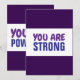 Duas design laterais, fortes de um lado, poderosas do outro. Alguns dias, você precisa de um estranho para lembrá-lo que você tem isso. Seja tão estranho para uma pessoa que precisa ouvi-lo. Você é forte. Você é poderoso. Capacite as pessoas lembrando-lhes que elas são fortes, poderosas, capazes. Nem tudo está perdido. As coisas não são inúteis. Eles não estão indefesos. Descrição da design: O lado frontal lê: "Você é forte." As palavras "Você está" estão em um grande estilo de escrita manual roxo em todos os bonés em uma linha na parte superior do design. A palavra "Forte" está abaixo dela em uma fonte de sans serif azul de todos os bonés. O texto em ambas as linhas tem aproximadamente a mesma largura na área do design e aproximadamente a mesma altura, apesar das diferentes fontes. O texto está centrado em um fundo retângulo branco. Abaixo está uma cor de fundo roxa escura. O verso diz: "Você é poderoso." Mesma design da frente, um tipo de letra ligeiramente diferente porque "poderoso" é uma palavra maior do que forte. O texto são modelos e você pode personalizar ainda mais as cores, fontes, etc.