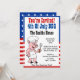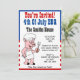 Você está convidado para um churrasco de 4 de julho com um porco de desenho animado engraçado. Coloque todos no clima da festa com o convite legal do Dia da Independência. É ótimo para qualquer churrasco familiar no dia 4 de julho ou porco assado e apresenta um porco de desenho animado sorridente e chef. No verso estão as estrelas e listras. Vermelho, Branco e Azul coloridos.