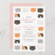Convide amigos e família para comemorar o dia especial do seu pequeno dia com este adorável convite de aniversário, apresentando pequenos gatinhos em preto, branco, laranja e rosa.