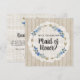 Lindos elementos florais em azul jeans acentuados com detalhes de setas boêmias arrojadas dão a este design muitas boas vibrações! Fundo de madeira rústica, tinta branca e estilo de aquarela realista trazem textura graciosa e charme. Natural e fresco para uma celebração de casamento contemporânea.