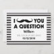 Pensando em pedir a alguém para ser o seu padrinho no seu futuro casamento, então por que não escolher esses cartões de pergunta de padrinho com bigode preto e branco? Este convite personalizado fará com que seu amigo, irmão, primo, sobrinho, filho ou quem quer que você escolha se sinta ainda mais especial. Este convite é facilmente personalizado clicando no botão "personalizar" abaixo da imagem, onde você poderá alterar o texto, a fonte e o tamanho.