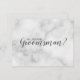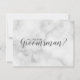 "Você Será Meu Padrinho de casamento?" Cartão Mínimo Elegante de Manuscrito Branco com a redação "Você será meu Padrinho de casamento?" no estilo de fonte de script moderno da cinza com fundo de mármore branco na parte frontal, com texto personalizado da cinza na parte traseira.