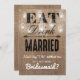"Eu não posso dizer "eu faço" sem você!", ponte rustica country, uma placa moderna plana com um fundo de efeito burlap, castanho, elegante lamparina de jarro, as palavras "EAT, DRINK E BE CASADO" e sua redação de damas de honra. Esses cartões de casamento facilmente personalizáveis podem ser alterados para atender às suas necessidades, desde a adição de sua própria mensagem pessoal até a alteração da fonte e da cor.