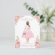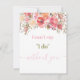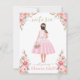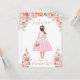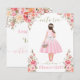 Lindo convite personalizado de "Você será minha Dama de Flores?" com elementos florais em pêssego e rosa, uma adorável parte de trás de uma menina com cesta, vestido de cetim e coroa de flores. Altere a cor do cabelo para uma diferente, com minhas outras damas de flores para personalizar. Esta é uma morena. Você não pode dizer "Eu aceito" sem você!