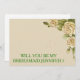 Este belo "5" x 7" será a minha dama de honra? Isto é melhor para a noiva. Se você está pedindo a alguém para ser sua dama de honra para seu futuro casamento, então por que não escolher essas cartas de dama de honra. Este cartão de convite personalizado fará com que seu amigo, primo-irmã, sobrinho, filha ou qualquer outro que você escolher sinta isso especial. Este convite é facilmente personalizado clicando no botão Personalizar sob a imagem onde você poderá alterar o texto, a fonte e o tamanho. Você pode convidar seus melhores amigos em estilo com estes convites clássicos. É adequado para a florista, a madrinha de casamento ou para a matrona de honra. Envie-lhes este cartão da dama de honra.