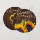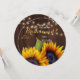 Personalizado será a minha dama de honra / madrinha de casamento / florista um cartão de texto editável com elegante ouro amarelo rústico girassol em madeira marrom escura com cordas de luz cintilante. Ideal para o seu verão ou outono | elegante país russo | casamento temático no quintal exterior.