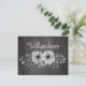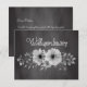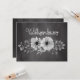 Cartão personalizado de madrinha de preto e branco rústico em quadro-negro para pedido de casamento - Você será minha madrinha? Cartão de pedido de participação no casamento para convidar entes queridos para fazerem parte da sua comitiva. Lê 'Você será minha madrinha?' em letras brancas elegantes na frente. Visual de quadro-negro rústico na frente e verso. Grinalda floral em aquarela em preto e branco na frente. O verso tem letras em estilo manuscrito correspondentes com mensagem personalizada com o nome da madrinha, pedido e assinatura de encerramento personalizada. Pequena grinalda floral vintage na parte inferior. Frente e verso completamente personalizáveis. Altere os estilos de texto, cores ou formulação. Existem diferentes estilos e tamanhos de cartões de madrinha. Altere a formulação para criar cartões de proposta para a comitiva. Temos mais cartões de pedido de participação no casamento em nossa loja
