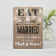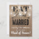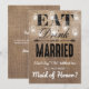 "Não posso dizer "eu aceito" sem você!" cartão moderno e simples de dama de honra country rústico com um efeito de fundo de aniagem marrom rústico, jarro de mason elegante com luzes cintilantes, as palavras "COMA, BEBE E CASE-SE" e a mensagem para a dama de honra. Esses cartões de casamento facilmente personalizáveis podem ser alterados para atender às suas necessidades, desde a adição de sua própria mensagem pessoal até a alteração da fonte e da cor.