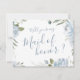Um moderno roteiro "Você será minha madrinha de casamento" rodeado por uma floral de aquarela em azul empoeirado e verde-sábio, elegante e romântico, carta de proposta de excelente para casamento moderno, casamento romântico e casamento de jardim botânico em primavera e verão. Veja todas as peças correspondentes na coleção.