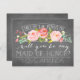 Proponha a sua madrinha de casamento com uma bela carta que lindamente diz "Eu não posso dizer 'Eu faço' sem você." Este cartão apresenta lindas flores aquáticas e uma mistura de tipografia moderna, tudo sobre um fundo de quadro chanfrado. Torne fácil para eles dizer sim com esta bela carta. Disponível como uma placa plana ou dobrada. Pegue a coleção toda para sua festa noiva.