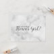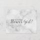 "Você Será Minha Menina de Flores?" Cartão de Rótulo de Mármore Branco Minimalista Elegante com a frase "Você Será Minha Menina de Flores?" em estilo de fonte de escrita moderna cinza com fundo de mármore branco na frente, com texto personalizado cinza no verso.