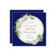 Antigas flores brancas de aquarela com bagas contra fundo azul rico e cestaria dourado. Personalize com o seu nome e o nome da sua dama de honra. Personalize seu texto, estilo de fonte, cor e tamanho ou mantenha este design popular para sua conveniência.