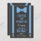 Por que não pedir a alguém que seja o seu melhor homem para o seu próximo casamento, escolha esta roupa de cinza escura, gravata de arco azul e trave os melhores cartões de homem. Este convite personalizado fará com que seu amigo, irmão, primo, sobrinho, filho ou qualquer outro que você escolher sinta isso especial. Este convite é facilmente personalizado clicando no botão Personalizar sob a imagem onde você poderá alterar o texto, a fonte e o tamanho.