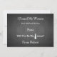 Este Conselho preto padrinho de casamento de 5" x 7" bonito com cartão de convite de gravata branca. Isto é melhor para o noivo. Se você está perguntando a alguém para ser sua padrinho de casamento para seu futuro casamento, então por que não escolher esses cartões de padrinho de casamento. Este cartão de convite personalizado fará com que seu amigo, irmão, primo, sobrinho, filho ou qualquer outro que você escolher sinta isso especial. Este convite é facilmente personalizado clicando no botão Personalizar sob a imagem onde você poderá alterar o texto, a fonte e o tamanho. Você pode convidar seus melhores amigos em estilo com estes convites clássicos. É adequado para o Melhor Homem ou para Padrinhos de casamento. Envie-lhes este cartão de padrinhos de casamento.