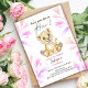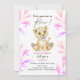 Vai me ouvir rugindo! O primeiro Convite de aniversário é um design giro com cubo de leão e folha de cor rosa tropical para meninas