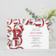 Este convite de festas temático de vôlei apresenta vermelho, cinzas e volichões brancos agrupados nas bordas esquerda e superior na frente e um cluster de solteiros que cobre o verso do convite - personalize os detalhes do partido em coordenação de cores em fundo branco - por katz_d_zynes