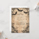 Marque a cena para uma celebração arrepiante com este design de Halloween, que assombra. Apresentando morcegos pretos em voo contra um pergaminho envelhecido, emoldurado por videiras e folhagem, é perfeito para uma reunião escura e elegante. Um design misterioso e eterno que convida seus convidados para uma noite de emoções e sombras.