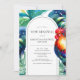 Estes convites para renovação de votos apresentam a cor d'água Sol O galo e as folhas tropicais em tons vibrantes de aquarela. Use os campos modelo para adicionar seus detalhes personalizados. Encomenda cartões impressos ou convites imprimíveis. Uma escolha elegante para um convite de aniversário com um tema da Florida Keys e da praia tropical. Para ver mais designs como esta, visite www.zazzle.com/dotellabelle Arte a aquarela exclusiva e design por Victoria Grigaliunas do Do Tell A Belle.