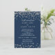 Vow Reneways Elegante Cartão de convite com Silver Faux Glitter Confetti Marinho Blue . Excelente para casamentos/eventos formais.