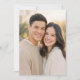This wedding invitation features a warm, intimate photograph of two individuals smiling closely together, capturing a moment of affection and joy. The soft, neutral color palette of beige and cream creates a harmonious balance against the golden, softly blurred background, evoking a serene and inviting atmosphere. The realistic style emphasizes natural lighting and authentic expressions, making it perfect for couples seeking a heartfelt and personal touch for their special day.