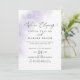 Este convite de recepção de elopementos roxos de lavagem com aquarelas é perfeito para um partido de elopemento poste moderno. O design simples e clássico apresenta uma abertura de cor púrpura de água pastel lavanda com estilo elegante minimalista. As placas RSVP são vendidas separadamente ou você pode adicionar informações RSVP à parte traseira da placa.