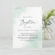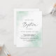 Este convite para o batismo verde de lavagem com aquarelas é perfeito para um batismo moderno para bebês. O design simples e clássico apresenta um salto de cor pastel de água verde com estilo elegante minimalista.