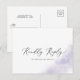 Este cartão postal RSVP, canção púrpura de lavagem aquosa, é perfeito para um casamento moderno. O design simples e clássico apresenta uma abertura de cor púrpura de água pastel lavanda com estilo elegante minimalista. Crie sua lista de convidados de casamento e sua lista de músicas de dança de uma só vez! Este cartão de resposta do casamento convenientemente pergunta aos hóspedes se eles serão capazes de ir ao seu casamento, e também que música os fará dançar.