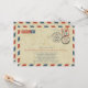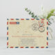 Personalize o seu casamento com esta Design de Viagem de Carta de Correio Aéreo angustiada para o seu Casamento de Destino para a Áustria. Mapa do mundo. Dois corações vermelhos nos lugares de onde a noiva e o noivo são. Este é Washington DC EUA e Portugal. As linhas pontilhadas unindo-as. O carimbo mostra a localização da ÁUSTRIA onde o casamento será realizado. Se você precisar de locais diferentes ou de uma mudança de cor ou de placas para acompanhar este tema, envie um email para paula@labellarue.com