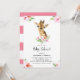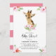 Convite Watercolor Baby Giraffe Pink Hibiscus Chá de frald