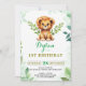 Convite Watercolor Baby Lion Prince Greenere Aniversário