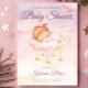 Featuring a gentle pastel background, a cute sleeping baby on a fluffy cloud, and glowing star accents, this design brings warmth, tenderness, and magic to your celebration.