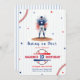 Celebrate a superstar turning ten with this dynamic baseball-themed party invite! 🥳 This design features a stylish watercolor splash effect, showcasing a young baseball player in a blue and red uniform standing proudly on the pitcher's mound. The vintage, distressed look gives it a classic feel, while the background's blue and white pinstripes and scattered stars add a patriotic touch. Perfect for a sports lover's 10th birthday celebration. The central graphic includes crossed baseball bats and a stitched baseball element, emphasizing the theme. 🧢⚾ Get ready to "Swing on Over" for a memorable game day party! Rustic, sporty, and unique.