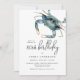 Convite Watercolor Blue Caranguejo 80 Aniversário