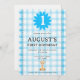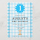 Convite Watercolor Blue Check Koala Birthday Invitation