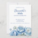 Convite Watercolor Blue Floral 90th Birthday Party