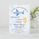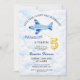 Convite Watercolor Blue & Gold Airplane 5th Birthday