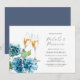 Celebrate with elegance using these elegant bridal shower invitations, designed with hydrangea flowers in shades of blue and a "Petals & Prosecco" theme. These floral bridal shower invites set a fresh and sophisticated tone for a summer celebration. The reverse side features a solid navy blue color for extra sophistication.