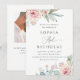Convite Watercolor Blush Floral & Cactus Wedding. Photo QR