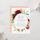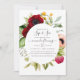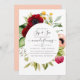 Boho floral e veja o convite com peônia e flores anêmonas, verde e penas em sotaque de ameixa e pincel rosa personalizável para suas especificidades.