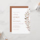 Warm, organic, and effortlessly elegant, this watercolor botanical wedding invitation features a lush eucalyptus leaf stem in rich earthy tones of rust, terracotta, olive, and taupe. The stunning single-stem illustration runs the full height of the card, creating a dramatic yet understated focal point alongside clean, modern typography.