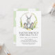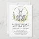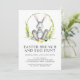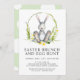 Uma Páscoa encantadora, Brunch e Caça-Ovos, convidada com um coelho de coelhinho-d'água giro cercado por uma coroa floral primavera de daffodils, salgueiro-de-brega e verde-jardim em um simples fundo branco. O verso do convite carregar o tema primavera com fundo verde pastel e pontos espalhados. Todo o texto deste convite pode ser personalizado com os detalhes desejados.