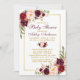 Convite Watercolor Burgundy Foto Dourada do Chá Floral