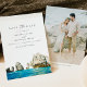 Esta salva mostra uma pintura aquosa de Cabo San Lucas, praia e oceano do México, com um layout elegante minimalista. Isto para salvar a data é perfeito para o seu casamento de destino tropical. Edite facilmente o texto *maioria* para atender às suas necessidades e adicione sua própria foto ou fotos ao fundo com seu site de casamento.