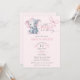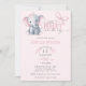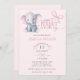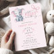 Convite Watercolor Elephant Pink Bow Baby Girl Shower